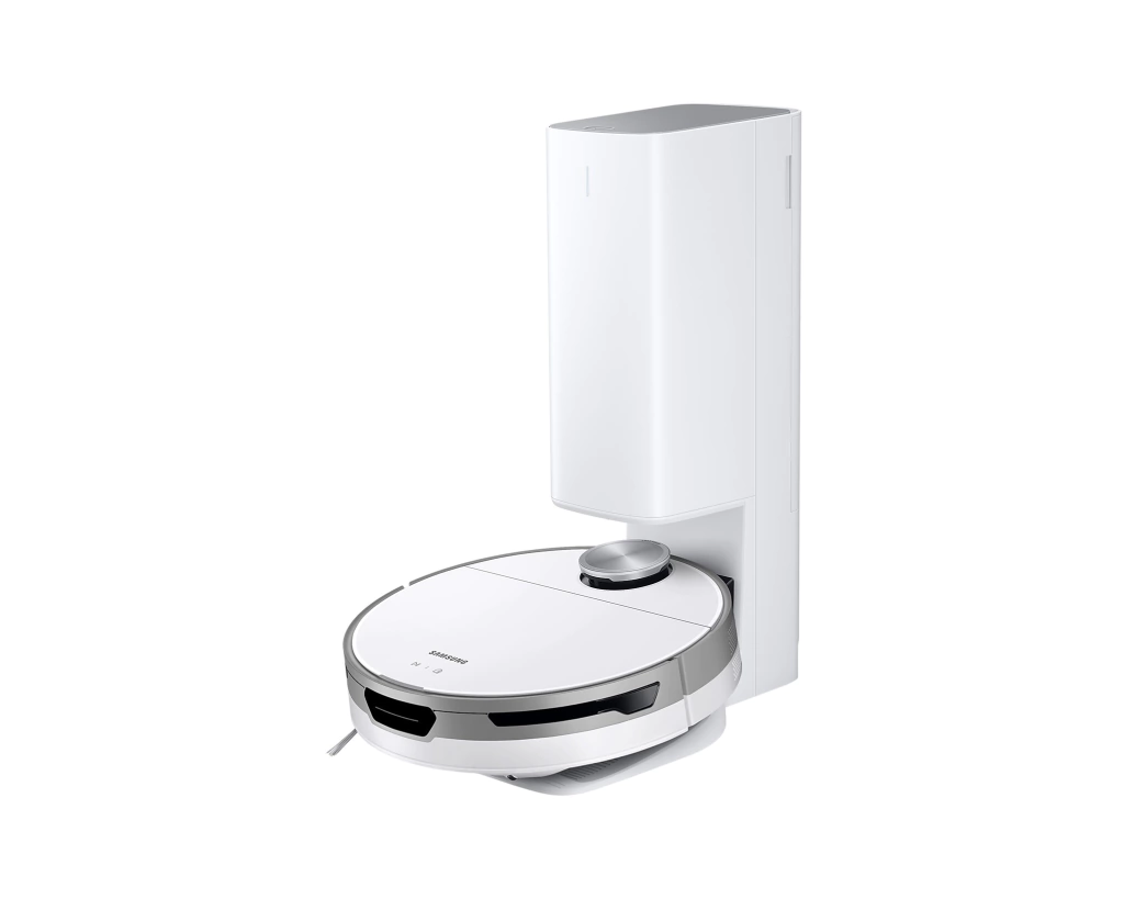 Descubre la aspiradora robot Samsung en blanco. Limpieza automática, alta potencia de succión y control inteligente para mantener tu hogar impecable.